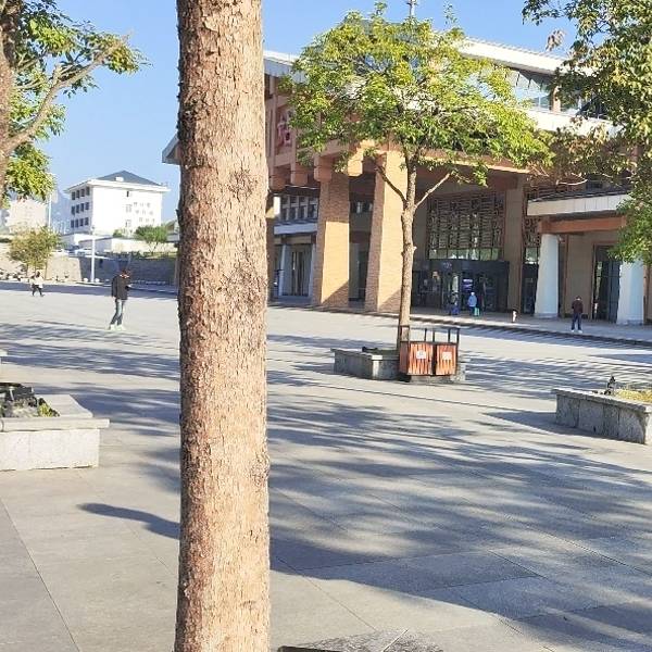 早晨的阳朔站人不算多,但炙热的太阳已经很烤人了。