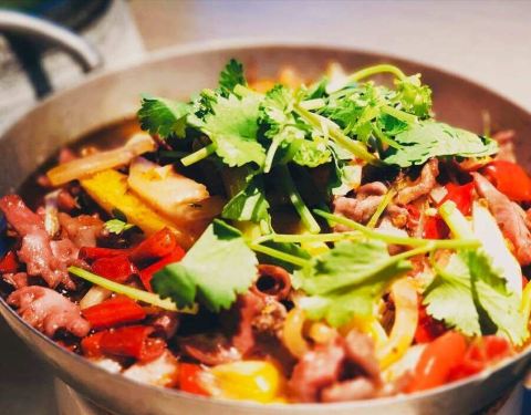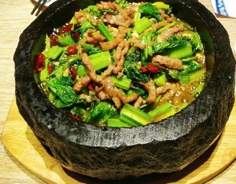 ...腾的卟卟卟卟冒泡,牛肉条口感细腻、嫩滑,青菜非常入味,咸鲜青香,微辣,品尝这道菜要特别小心烫口