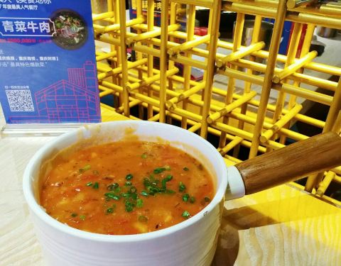 很有重庆黔江特色的一家餐饮店,重口味,份量足,特色菜品多。招牌青菜牛肉石锅器皿,服务员呈上桌时还是热气腾腾的卟卟卟卟冒泡,牛肉条口感细腻、嫩滑,青菜非常入味,咸鲜青香,微辣,品尝这道菜要特别小心烫口。蕃茄土豆泥实际上是蕃茄土豆小片,不是完全的成泥状,口感很鲜,对味蕾有诱惑力。童年三角粑就是三角形的烤米糕,呈糕的竹器很漂亮,令人立马与原汁儿原味儿联系起来。店面比较大,上菜快,装饰非常的重庆特色,服务态度很好。