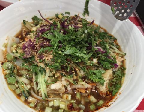 很不错的一家餐馆,尽管价格有一点小贵,但物有所值。大块牛骨超级棒,味道地道,羊肉串也很好吃,鲜嫩不膻,汁多味全。凉皮也不同于街面上卖的,所有的菜都很可口。