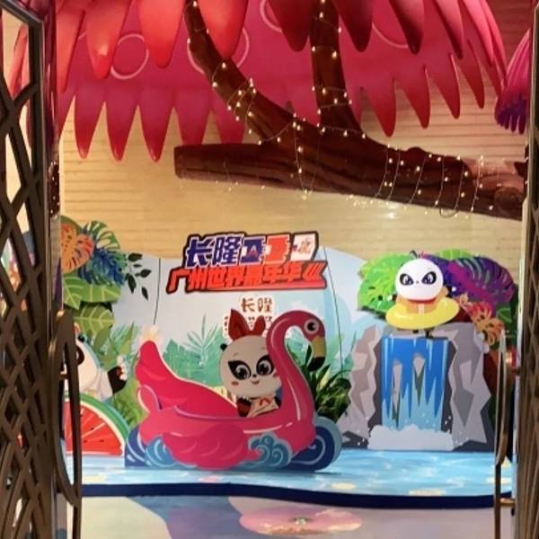 - ...其中,那样大人就可以好好吃饭啦前面的舞台定时会放熊猫三胞胎的动画片,小孩可以在前面一边吃一边看