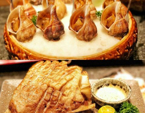【刺身拼盘】厚切的三文鱼肥美甜润,口感醇厚,入口顺滑。 北极贝也比平时的大,鲜甜汁水也多,不爱吃刺身的基础下都能接受它。 蟹腿肉很精致,点缀的金箔感觉提升了档次,蟹腿肉完整的出壳,一咬,满足整个味蕾...【刺身拼盘】厚切的三文鱼肥美甜润,口感醇厚,入口顺滑。 北极贝也比平时的大,鲜甜汁水也多,不爱吃刺身的基础下都能接受它。 蟹腿肉很精致,点缀的金箔感觉提升了档次,蟹腿肉完整的出壳,一咬,满足整个味蕾的感觉。 【牡丹虾】虾中极品的牡丹虾,做刺身口感最佳,每一只都很大,属于脱衣有肉,味道甜美,口感丰富,软嫩,平均60¥一只。 【生烤牛肉】半生不熟的样子约2分熟,牛肉很薄,中间是生的,可以清晰看出雪花纹,生牛肉口感很独特,可以细细品尝一番。 【鲷鱼薄切】摆盘很精致,鲷鱼切的非常的薄,刀工了得,入口没有腥味,口感滑嫩,很爽脆。 【海螺】海螺有叉子可以剃出来,旋转一下,很肥的一块肉就转出来了,不过听过有些部分不能吃。海螺肉有劲道,原汁原味真好吃。 【黑鲔鱼下巴】黑鲔鱼的肉是日料中的极品,而下巴多用来作为炭烤。刚开始看到以为是一块很肥的猪牛肉之类的。这么肥的鲔鱼,吃起来一点都不腻,肉质鲜美,推荐! 【法式鹅肝】鲜嫩欲滴的鹅肝吃下去在口中融化,细腻如奶油,夹的时候要小心一点,真怕她嫩化了。 【碳烤牛排】炭烤的东西都好吃,牛排很嫩,多汁,要趁热吃~搭配着他家的酱。 【烤鳗鱼】吃日料怎么能少的了鳗鱼呢,现烤的鳗鱼热热烫烫,富含油脂感的鳗鱼,在舌尖慢慢融化,好吃极了。 【日式鳗鱼饭】酱汁拌饭没有鳗鱼我也能吃的很香,很有食欲。鳗鱼不腥,也没什么刺,小孩老人都适合吃。 【鹅肝黑鱼籽卷】鹅肝跟米饭搭配更美味了!油脂在口中爆开来,现在想起它还是觉得超满足,味道香浓,入口即化。 【酱烤鲑鱼饭团】在日本吃过便利店的鲑鱼饭团很好吃耶。酱烤的表皮很硬,像锅巴,饭团要趁热,约冷越硬。