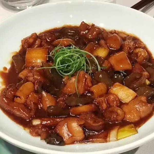 这个可是老北京八大堂之一惠丰堂的镇店名菜,爪尖就是猪蹄。先烧后炖,半汤半菜,味道鲜香,口感劲道筋滑,火候到家!好像还加入了海参,满满的胶原蛋白呀,相辅相成,各有味道。