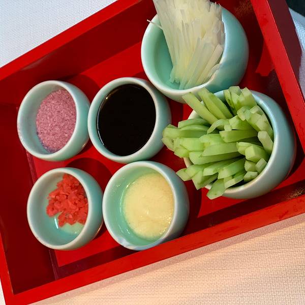 早听双井的朋友们提起拾久,有机会相聚就定在了这里。新式京菜是在老北京菜品的基础上改良外形以及新的辅材与配料结合,口感更为融合与丰富。比如山楂鹅肝,恰到好处的酸度减弱了鹅肝的腻度,又如拔丝榴莲,不让榴莲外放的气味刺激到其他人,又把榴莲的软腻与异香留在这个小球中。佛跳墙与葱烧海参也都入味,其他的也都是好看又好吃,打卡点赞~