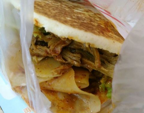 想起来还是很好吃的,只是无意间将最早去时的土豆片夹馍与后来再去的照片放在一起,发现就早去的料足...