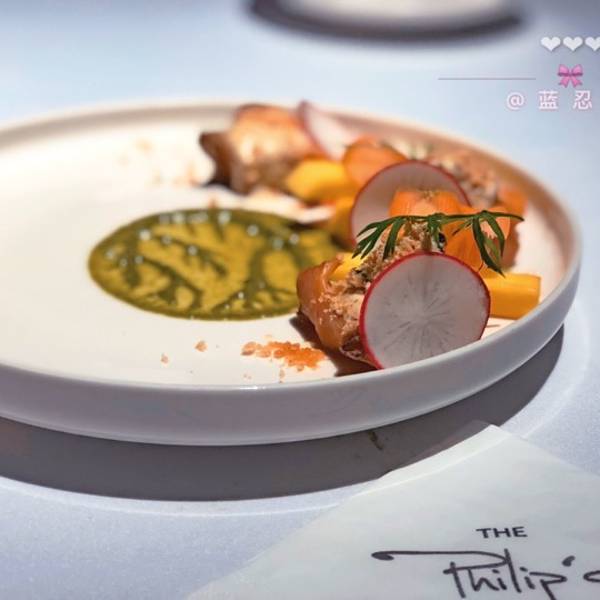 吃了有一段时间了,可是当看到当时拍的图,还是心向往之。菲利普的位置在磐基名品中心,不是特别显眼的位置,反而也烘托了私密的氛围,里面是暗色系暖色调的风格,但是每张桌子上打的灯光很温暖很到位,食物端上...吃了有一段时间了,可是当看到当时拍的图,还是心向往之。菲利普的位置在磐基名品中心,不是特别显眼的位置,反而也烘托了私密的氛围,里面是暗色系暖色调的风格,但是每张桌子上打的灯光很温暖很到位,食物端上来看起来就很有食欲。 最印象深刻的是菜品精致,我们6个人点了几个套餐,低温慢煮三文鱼,黑松露菌菇汤,法国鹅肝都非常棒,除了生的生蚝不是很吃的惯,其他都满意并惊喜十足,分量不大,但是感觉仪式感满满。