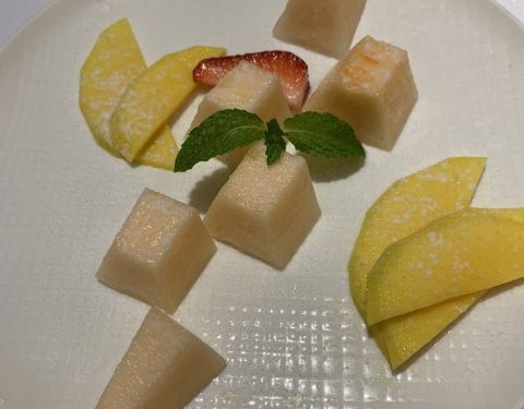 【口味】气泡水很好喝,解渴 巧克力甜品比较一般,有点化,另一个还不错 果盘摆盘精致,也很新鲜