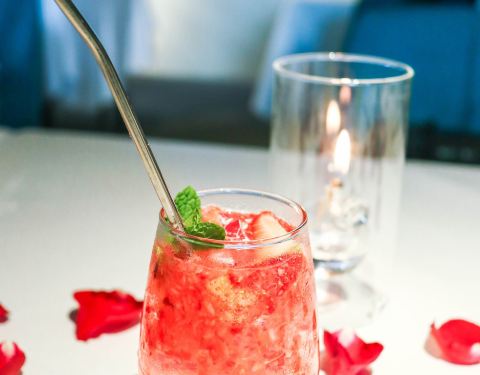- 【口味】气泡水很好喝,解渴 巧克力甜品比较一般,有点化,另一个还不错 果盘摆盘精致,也很新鲜