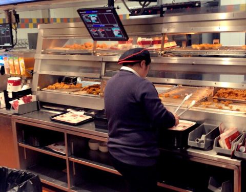 萧山机场国内航站楼有两家肯德基,2店在T3航站楼的尽头,提供早餐,晚上打烊时间也比1店晚,价格相对于机场内的高消费来说更为实惠,鸡翅、薯条这样的快餐很受小朋友欢迎,你可以在店内用餐也可以打包带走食物。