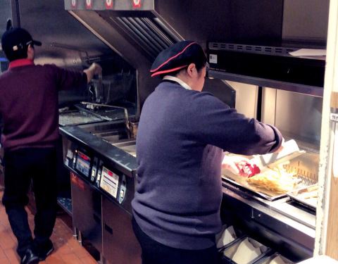 肯德基在萧山国际机场居然有如此大的门面!而且机场有两家肯德基,这家是大又宽广的,有三个门面,位置在T2航站楼的到达厅靠近T3航站楼的位置。里面有许多供顾客休息的桌椅,不过由于在一楼,所以略显暗些。店内顾客偏少,不知是否与位置较偏而且在到达厅有关,一般来说旅客抵达大多是直接坐车离开的,所以光门面大也不行,要讲究位置才行!