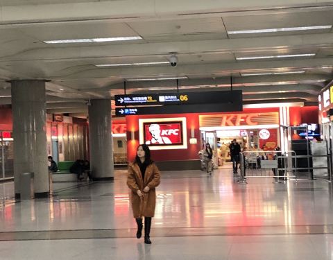 肯德基在萧山国际机场居然有如此大的门面!里面有许多供顾客休息的桌椅,不过由于在一楼,所以略显暗些