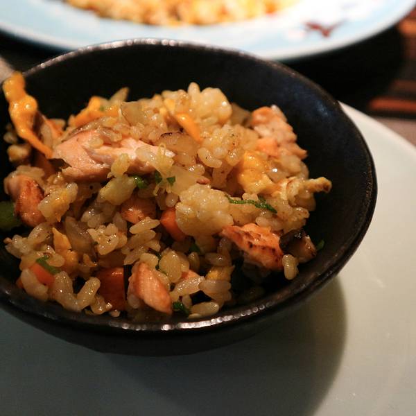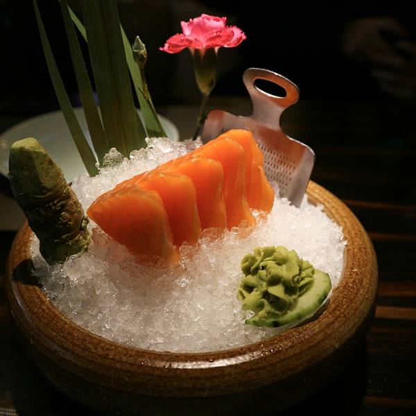山葵作为日料中最重要的调味品,具有杀菌、预防食物中毒、促进食欲、促进肠胃消化吸收等作用,又以其独特的辛辣味备受刺身爱好者的热爱。 山葵常常以成品芥末的形式出现在餐桌上,往往只有在高级日料店,寿司师傅才会在客人食用前再把山葵磨成泥,这样可避免山葵的香气挥发。新鲜山葵磨成的山葵泥和成品芥末相比,口感不那么刺激,但香气浓郁很多。 位于观音桥北城天街5楼的日料店【山葵家】主打手磨山葵,融合精致的各色料理,打造出了不同于普通日料的店的优雅。餐厅的装潢融合了传统日式和现代欧式两种风格,明亮的金黄色点缀在偏暗的整体氛围中,令人食欲大开。进门那排巨大的酒柜更是让人蠢蠢欲动,清酒配鲜肉,一杯敬明天,一杯敬过往。超厚切三文鱼×手磨山葵 虽然厚切三文鱼基本是吃日料的标配了,可是这么厚的三文鱼表锅还真是第一次尝试。五片厚度超过5cm的三文鱼整整齐齐地排列在碎冰上,旁边就是珍贵的新鲜山葵。将山葵磨成泥放入酱油中调和,夹起纹路精美的三文鱼充分蘸裹后放进嘴里,这感觉简直不要太满足!芒果鲜虾卷 酸甜的芒果和鲜甜的虾肉本来就极为搭配,再加上少许牛油果、蟹肉碎和鱼子酱,高级感立刻上升N个档次,还真舍不得一口吞下去呢~天妇罗拼盘 大虾、香菇、红薯、秋葵都是制作炸物的最佳材料,合适的油温最大限度地将食材的美味释放出来,再通过时间将多余的油脂析出,天妇罗赏味喷香又清爽。酱渍牛舌 厚厚的牛舌软糯弹嫩,用日式做法将清酱油的独特味道完全的浸渍入牛舌细胞的每一个间隙,一口咬下去全是酱油的清香和牛舌的浓郁。三文鱼沙拉 这盘三文鱼沙拉可真是我吃着料最足的沙拉了,整盘沙拉起码有一半都是不同熟度的三文鱼块,再搭配生菜、紫甘蓝、玉米粒淋上沙拉酱,清爽可口,开胃健脾。三文鱼炒饭 感觉山葵家一定会成为三文鱼爱好者的心头好,各种三文鱼料理层出不穷,三文鱼加入粒粒分明的米饭、洋葱、鸡蛋、红萝卜等香脆的碎料共同炒制,香气扑鼻,好吃又实在!秋刀鱼味淋干 秋刀鱼的滋味,杰伦和我都想了解。这条可不是普通的烤鱼,而是用清酒、糯米、米麴等发酵而成调料的味淋腌制得来,配上酸酸柠檬汁别有一番风味。韩国泡菜 原本大片的泡菜被细致地叠成厚实的形状,撒上香酥的白芝麻,是三文鱼炒饭的最佳搭档!