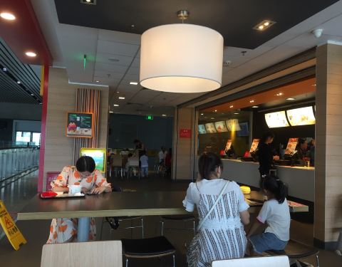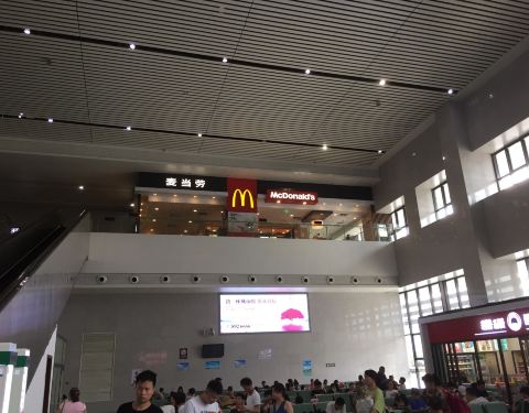 娄底南站内只有一家餐厅,就是麦当奴。去吃东西要坐扶手电梯上一层,但吃完要走楼梯到一楼候车大厅。餐厅人不多,坐得比较舒适,但找不到电源插座,有点不方便。