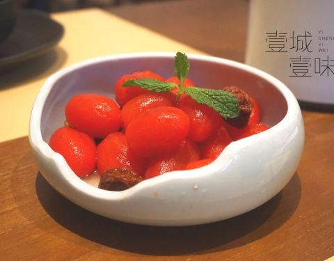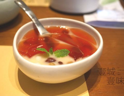 很喜欢榕意的slogan,榕意时光,简单生活。川菜的美,绝不仅于辣。前菜点了我最喜欢的甜甜小番茄,冰凉凉的很开胃;主菜是只标了一个辣椒却肯定不只是微辣的豆花肥肠,服务生提醒我肥肠的份量不多,但其实还可以,没有落差太大;一只虾肉很扎实,就是填充的配料太多,咬下去有点粘粘的;海参青菜羹里的海参并不多,不过不妨碍它好吃!甜品是只要看到一定会点的冰粉,爽滑滋味特别棒~他们家的茶位和米饭都比较贵,但整体服务很用心,茶水是热热的桂圆红枣,暖心暖胃,挺好的。