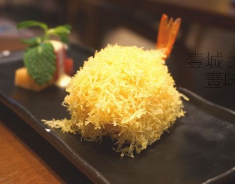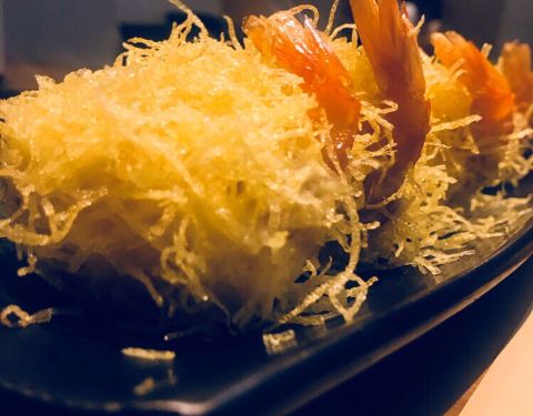 虽说是川菜,但其实感觉是融合菜比较多,川北凉面有特色,很小的一碗,外观精致,千丝万缕虾整两大口才能吃完一整只,应该是油条包裹着里面是芥末,赞