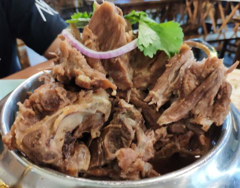 手抓骨点的麻辣口味,分量真的很足,味道也很棒。火爆花甲,花甲是蒜香味的,很好吃很入味,秘制大饼,好大ー盘,吃起非常很香。