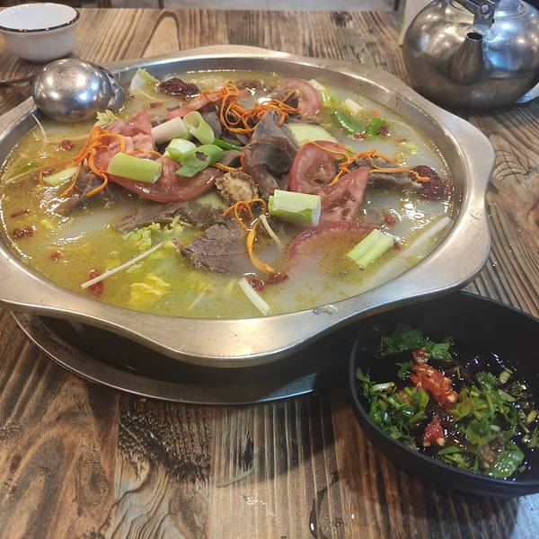 还是大众点评,看评价很好,慕名而来。老板很实在,建议我点个最便宜的锅,不够再加。酥油茶不错,几乎都是被我喝光的。走之前,龚先生留了一笔。