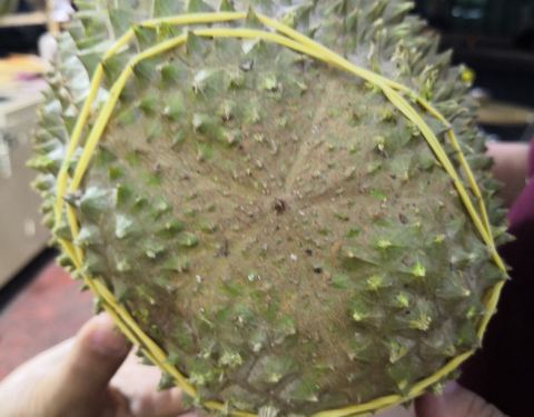 向导还教我们识别猫山王榴莲的方法,榴莲底部有一个星状的纹路非常明显