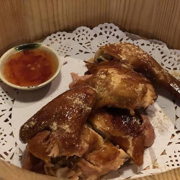 1⃣|胡桃里烤鸡^:这家店的招牌菜,好像还得了什么奖,一份大概半只鸡的样子,有六七块,肉质超嫩,搭配着泰式的甜辣酱,超级美味,必点的一道菜。