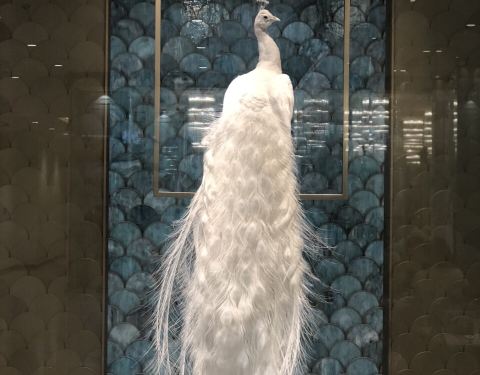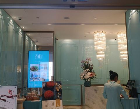 - 菜品做得很精致美味,连出售的月饼也很考究,用餐感觉很棒。门口有一只白色的孔雀,标志很明显