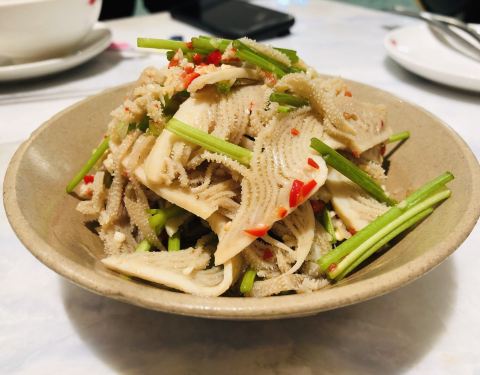 长宁排名第一的川菜馆?why? 难道不应该是付小姐在成都? 对孔雀的印象就是蒂凡尼色,然而她是卖红红的川菜的,感觉颜色很违和。 这次吃的是来福士的孔雀发现蒂凡尼色变成了薄荷绿。 他们家的菜量还是挺大的,但是味道真的有点一般,尤其红油抄手,让人失望。 炒腰肝倒是不错,大量的葱花一放,那股骚味就没了。