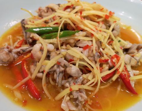 正常时间吃孔雀总是要排队,今天正好在饭点前,晚市还没有开始营业溜达到门口,就和服务员商量先坐下,厨房上班了再下单。美美的吃了一顿,因为两个人,点不了太多菜,不过这个鱼是百吃不厌,最佳选择。手撕包菜...