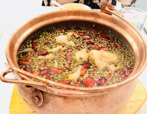 正常时间吃孔雀总是要排队,今天正好在饭点前,晚市还没有开始营业溜达到门口,就和服务员商量先坐下,厨房上班了再下单。美美的吃了一顿,因为两个人,点不了太多菜,不过这个鱼是百吃不厌,最佳选择。手撕包菜让厨师做了不辣的,也非常好吃。
