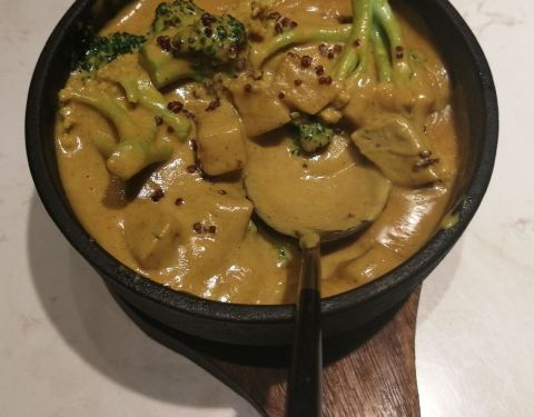母亲节前一天带麻麻来,新开的素食馆,店蛮大的,还有包间。 双人套餐里有5菜一汤一点心: 【冰镇鲜蔬】超有仙气的开胃菜~ 【什锦三丝】略微有点辣,切得超细。 【糖醋藕夹】这个超好吃,切的也很薄,脆脆的,外层淋有酱汁,超推荐。 【黑椒鲜蔬】量蛮大的,味道中规中矩。 【菌皇豆腐】豆腐很嫩,蛮鲜的。 【松茸汤】上来的时候还以为是茶呢,这个造型,汤装在壶里,里面料很足,好喝。 【菌皇生煎包】这个有点偏油了。 这次体验很棒,量足味道也好~