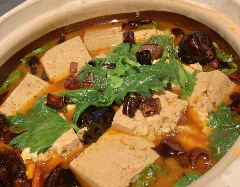 ╮╮╮ Ⅶ☽ 卍 ╭╭╭ 素食 晴 23-29度 【临湖素食】不愧是榜单上的TOP级,朋友想吃素,临时找了这家,虽然相对远一点,但还是值得,没丢面子 [环境] 位于龙华的保利时光里二楼 [服务] 已经很好了,面带微笑,能主动询问是否要换座位,挑刺的话,如果能主动看杯中水,倒的勤快些,完美了 「炝烧豆腐」每道素菜都摆盘精致,没有破损,灯光打的柔情似水,这道菜最喜欢,老豆腐浸在卤水中,多层次的辣味,回味再三,汤水也是勺勺下肚,其实想端到自己面前了[笑哭] ㊗️店家和气生财、生意兴隆
