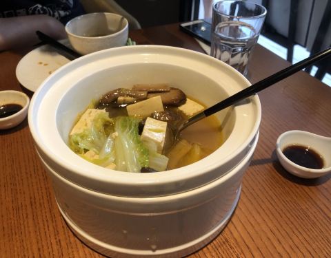 交通方便,就在地铁7号线,12号线龙华中路5号口出来走五分钟保利时光里二楼,事先订好了包房,否则要等位置。菜很有创意,味道很清淡,不油腻,菌菇,蔬菜,豆制品做成的素食味道挺好的。
