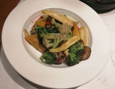 店家母亲节的活动也很给力,母亲免单活动,人气爆满~这边的“时光里”商场跟艺术相结合,空间感,舒适度很好~ 上菜的速度也不能称之为慢,因为我跟老公刚好吃的节奏一样,所以没吃完一道菜,下一道菜基本就上了,导致桌上一只只有1-2到菜,拍不了菜的全景,不过二人桌也不大,刚刚好 每每上一道菜,服务小妹妹都会简单说下菜名~~ 冰镇时蔬,按照我吃饭的风格一般是不会点的,但是感觉他们家的冰镇时蔬品种丰富:香菇、牛油果、秋葵、铁棍山药、无土番茄、黄瓜条、胡萝卜。每一种都吃光光,最爱番茄和胡萝卜,水分充足~搭配酱油和带芥末的酱油,2种蘸料~ 什锦三丝,调味特别赞,有北方人爱吃的麻椒炸出来的麻油~微微辣,很开胃 糖醋藕夹,虽然有点甜和油腻,但是很好吃,主要体现在口感上,甚至吃出了土豆的香味~~ 黑椒鲜蔬,用黑胡椒和菌菇、花菜、彩椒等炒在一起,也算是一种好的吃法,我们吃完决定回家效仿一下~~ 菌皇豆腐,个人感觉有点油,还放了香油,就更加有点腻~~ 菌皇生煎包,他们家包子是发面的,底也是煎的酥脆,还有芝麻点缀~ 松茸汤代替了饮料,味道刚刚好~推荐~~ 整体吃下来 还是比较满意的~~吃完逛了下这个商场,应该还回来吃其他餐厅,感觉这里的餐厅都不随波逐流,有自己的特色~~