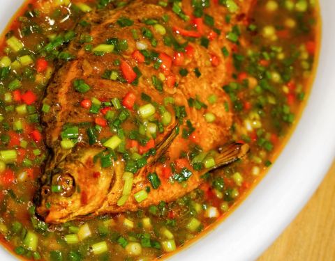 - 葱烧武昌鱼,闽南少见的葱烧做法,入味三分,鱼肉鲜嫩白滑,口感一流!蒜香特色美味,越吃越香