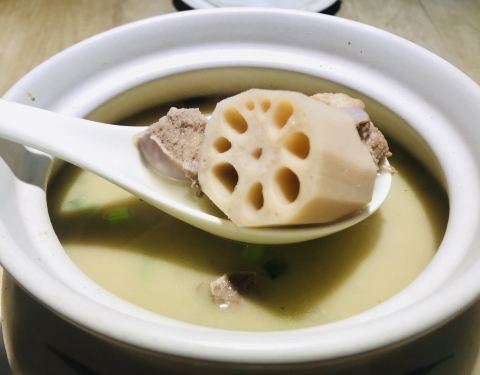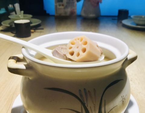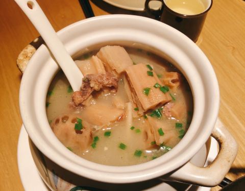 - 莲藕排骨汤,香浓清甜,莲藕据说是湖北空运过来的,又软又糯,非常好吃