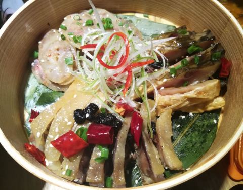 舌尖之旅,不出厦门游全国,这次打卡湖北味。位于jfc的楚厨。这里的店地理位置就是环境代名词绝对差不了。 比较让我惊喜的是食材特别,经过今天我也可以吹嘘自己是能吃辣的人了。辣椒,而且是尖椒看起来绝对辣到喷火,但实际吃起来只有辣椒味却一点都不辣。可以毫无压力吃下一大把。 铁锅鳝段,鱼肚牛肉,腊味三蒸都还不错。非常下饭。 腊味三蒸我只吃到了两味,腊鱼和腊肠。他家的味道适中别有风味。 同桌小伙伴大爱热干面连吃两份。