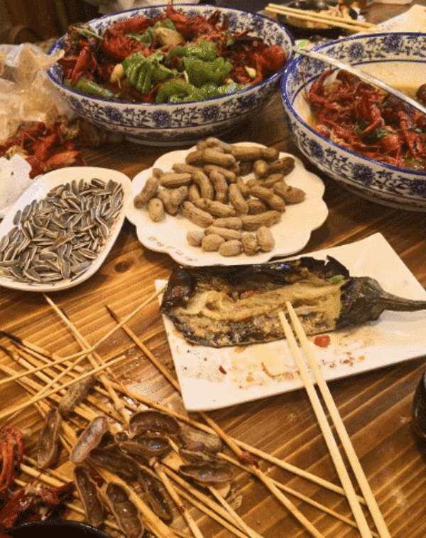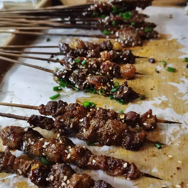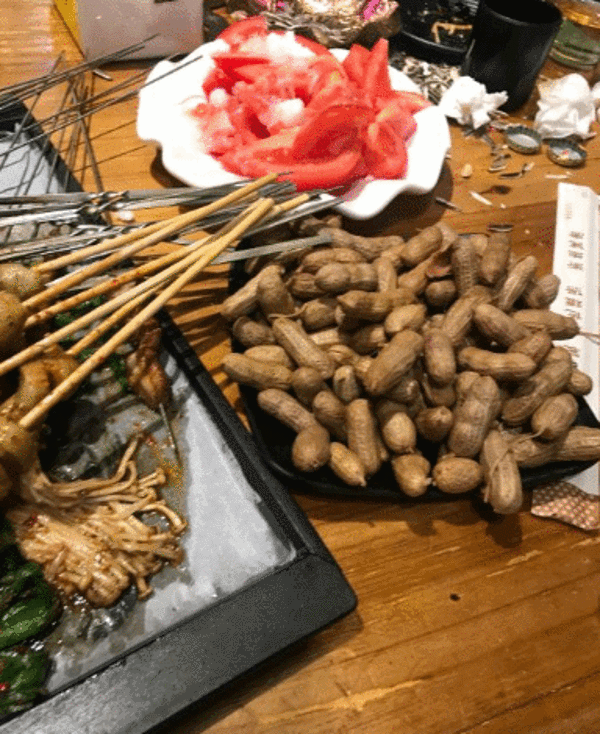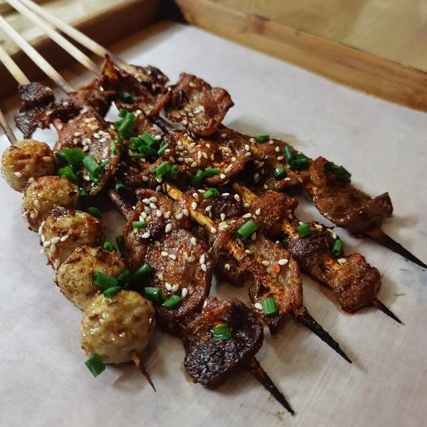同行的朋友推荐当地小馆子,说他上次来吃就很喜欢这家的湿辣牛肉和杂鱼汤。明明有大路,但是滴滴导航给指了一条特别窄的小路,把司机师傅也郁闷的不行。 这次我们点了湿辣牛肉、羊肉串、鱼丸、排骨,都腌渍的很入味烤的也不错 杂鱼汤是三种鱼和酸笋一起熬的,很开胃