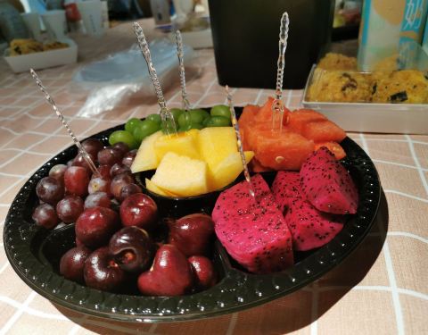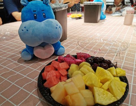 盒马的包还是挺好吃的,牛奶面包,软绵绵的蛋糕,还有一点奶油,甜甜的,还是挺好吃 盒马🐴的公仔还挺好看的 水果拼盘,水果新鲜,又切好了,不错。