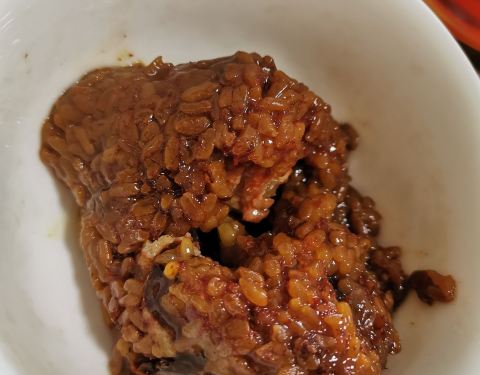 - 粽子整体感觉是偏咸,但是料足;其实吃不到玫瑰味,就是咸咸的;里面的肉很大一块!可能就是玫瑰高汤