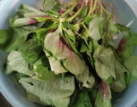 盒马的有机红苋菜~~ 超级喜欢盒马的蔬菜,0添加,0农药~感觉菜也很干净,洗2次就可以了。 只需要用热水煮一下就可以吃了,连摘都不用摘~