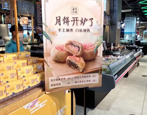 这家盒马先生开在天河东路的曜一城的2楼,和其他分店一样,几乎是一个综合超市了。 海鲜比较生猛~好想吃呀! 最近出了自制月饼,有多重口味,买了一个鲜肉月饼尝尝,毕竟跟传统的广式月饼不一样~