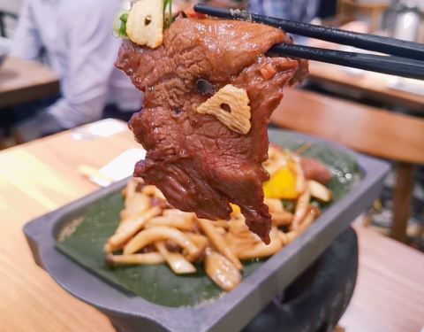 XO酱菌菇菲力牛扒 带着炉子上来,菇菌品种很多,吸收了牛肉的脂肪和香味,非常好吃。牛肉块有点老