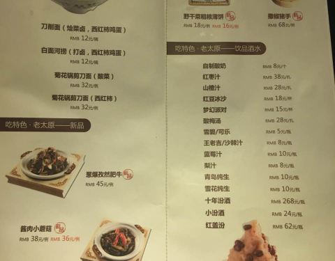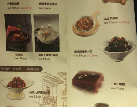 真好意思叫老太原,叫太原美食名片,已经不是好不好吃了,根本不能吃,吃了一两块红烧肉油腻到回去难受,我基本点的菜没吃,太恶心了。不能吃。不是我挑,铜火锅也很难吃,空有名片,上菜慢到爆,价钱无所谓,服务员形同虚设,快关门吧。在万达店吃的。