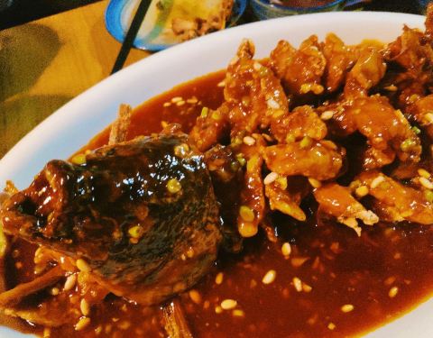 - 糖醋桂鱼、涮牛肚、麻辣猪蹄都是大硬菜,尤其糖醋鱼的汤汁配一碗白米饭简直了,珠联璧合