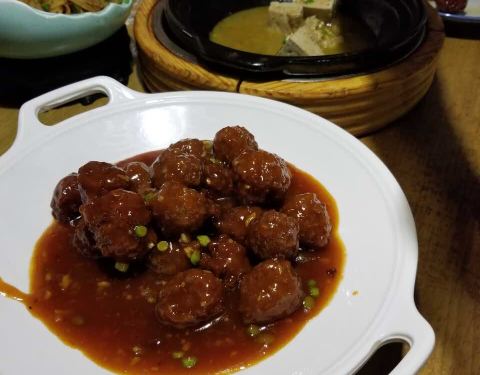 不错的,糖醋丸子,伴野菜,还有面,过油肉也不错,。环境也满意。