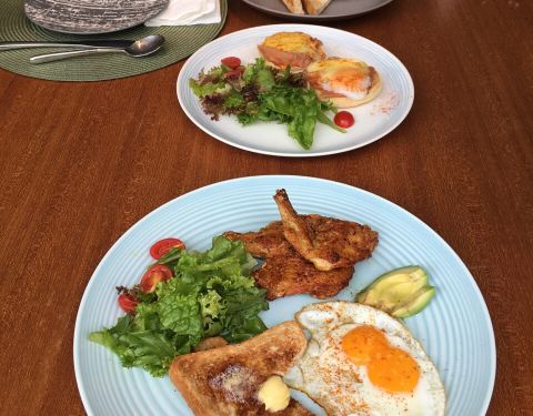 ...煎蛋、鸡腿、松饼都做到很不错,不仅特别入味,造型也特别精致,特别有艺术感,满足自己满满的少女心