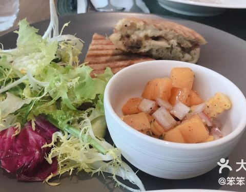 驱车来买拿破仑,路边的时候就被这家店整面的落地窗和里面干净简约的装修吸引了,刚好吃个午饭。 [环境]位于lv隔壁,推拉门不起眼,倒是一堵简约的墙吸引人。里面空间大,座位不少确也不拥挤,靠窗位置可以近...驱车来买拿破仑,路边的时候就被这家店整面的落地窗和里面干净简约的装修吸引了,刚好吃个午饭。 [环境]位于lv隔壁,推拉门不起眼,倒是一堵简约的墙吸引人。里面空间大,座位不少确也不拥挤,靠窗位置可以近览外面湖光水色,真是惬意。 [服务]服务员热情,绅士有礼,细节都做的到位。 「墨西哥式焗蛋」看旁边点了两份,好奇心让我也打算试试。上菜时候觉得有点失望,又是卷饼,早上才吃的。不过吃下去觉得还是不错,这个饼是脆脆的,加上酱料,咸香酥脆又有酸甜的融合。 「康沃尔式鸡」很大一份,烤鸡金黄不腻,有机土豆烤出来也绵密香,酱料酸甜有点回味。