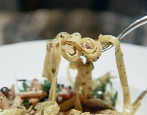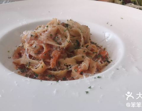 - 意面口感不错是扁意面带有龙虾汤 汁越喝越喜欢 巧克力慕斯 金桔的结合很喜欢底层铺有巧克力碎和脆脆还有