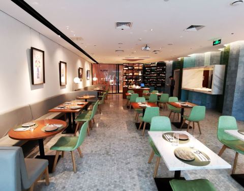 湖蓝色系营造艺术空间,西餐彰显食材精髓
