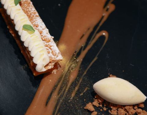 龙虾意面 意面口感不错是扁意面带有龙虾汤 汁越喝越喜欢 巧克力慕斯 金桔的结合很喜欢底层铺有巧克力碎和脆脆还有 蛋糕碎吃得很满足