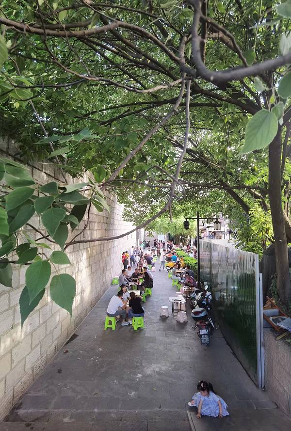 在文昌阁周围转悠的时候,突然,被我发现了新大陆。 在文昌阁城墙和省府路小学的中间,有个空地,还有 几条窄窄的夹弄和巷子,都放满了小桌子、小凳子,这是什么情况?此时,大概是17:00左右吧,很多座位都坐满...