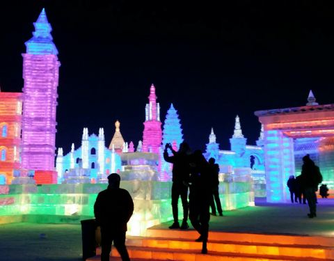 冰雪大世界是哈尔滨冬季旅游的必去的一个景点,就在市区的松花江上,规模非常大,每年都有新的创意,今年的餐饮和便利店都增加了
